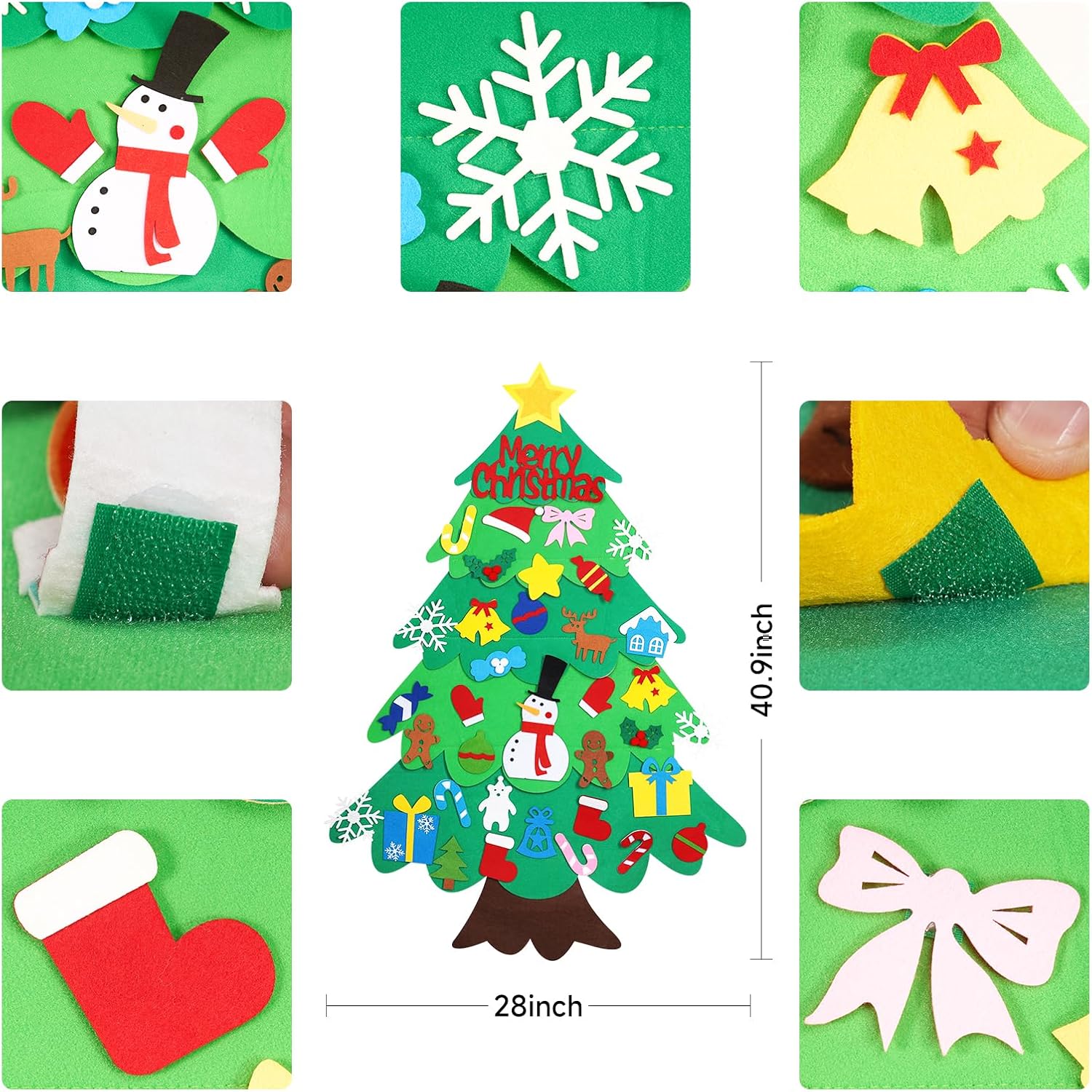 Turn chaos into calm with a kid-safe decorating solution. Our felt Christmas tree is easy to set up and even easier to decorate, with ornaments that stick effortlessly and securely. Enjoy peace of mind knowing your children can independently create holiday magic without the mess or safety concerns.